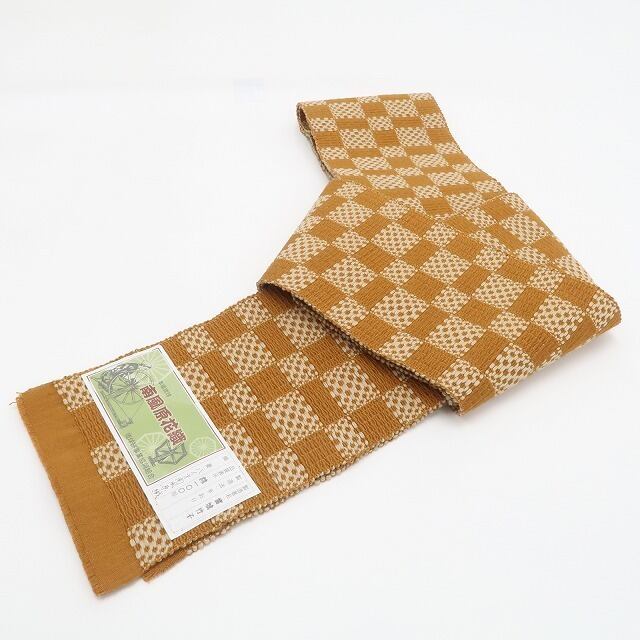 新品 南風花織 手織り 市松 夏着物 浴衣 綿“あたたかな心、独自の織技を物語る新定番”半幅帯 6247