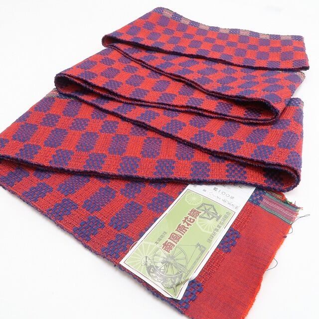 新品 南風花織 手織り 市松 夏着物 浴衣 綿“あたたかな心、独自の織技を物語る新定番”半幅帯 6249