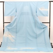 伝統的な意匠でありながら、軽やかな印象に仕上がっているのは、絽ならではの透け感と薄藍のやわらかな色彩があってこそ。