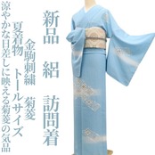 清らかな色彩と菊菱が品格を添えてくれる、訪問着。トールサイズのお品でございます。