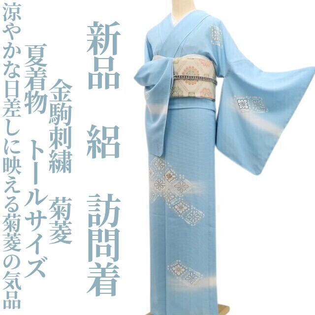 新品 絽 金駒刺繍 菊菱 夏着物 正絹 仕付け糸付”涼やかな日差しに映える菊菱の気品”トールサイズ 訪問着 6255