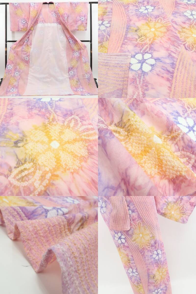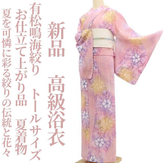 新品 有松鳴海絞り お仕立て上がり品 夏着物 綿 仕付け糸付”夏を可憐に彩る絞りの伝統と花々”トールサイズ 高級浴衣 6259