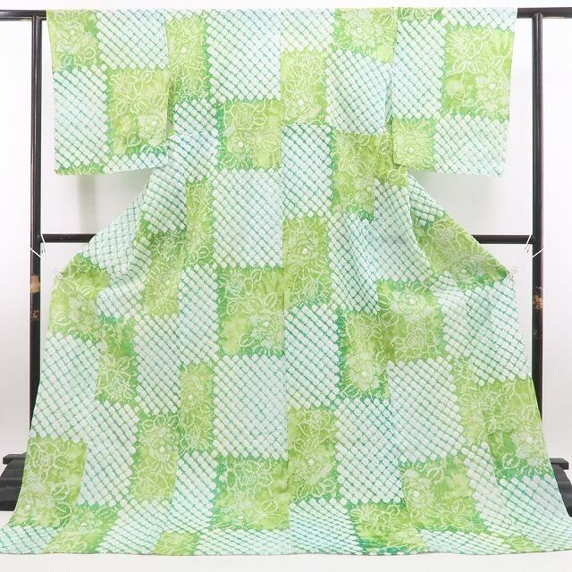 新品 有松鳴海絞り 市松 お仕立て上がり品 夏着物 綿 仕付け糸付”お洒落に決まる絞りの市松”トールサイズ 高級浴衣 626