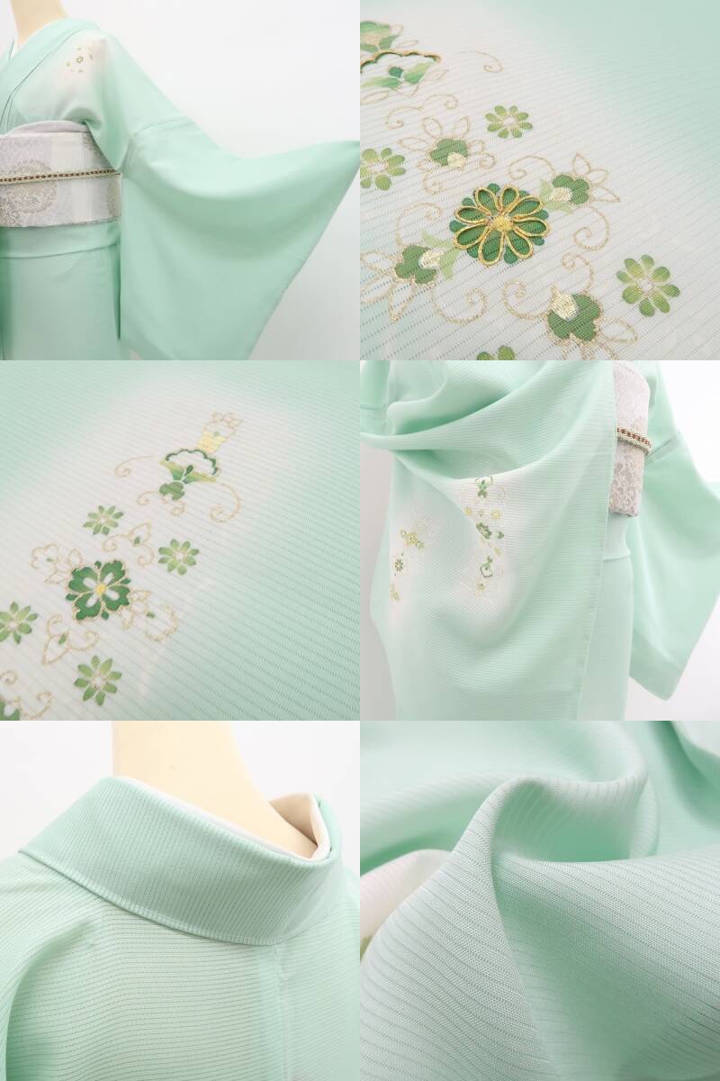 爽やかな色彩に咲く、金駒刺繍が美しい訪問着。