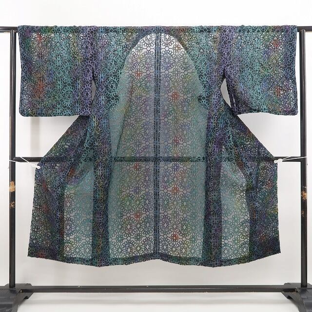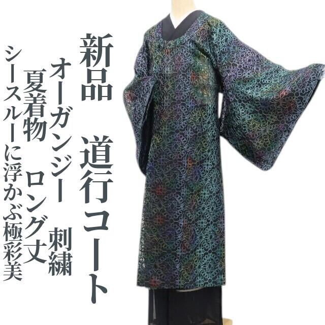 新品 オーガンジー 刺繍 夏着物 正絹 仕付け糸付 ロング丈“シースルーに浮かぶ極彩美”道行コート 6276