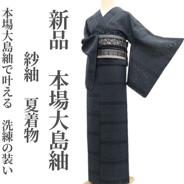 新品 紗紬 夏着物 正絹 仕付け糸付”本場大島紬で叶える、洗練の装い”本場大島紬 6280