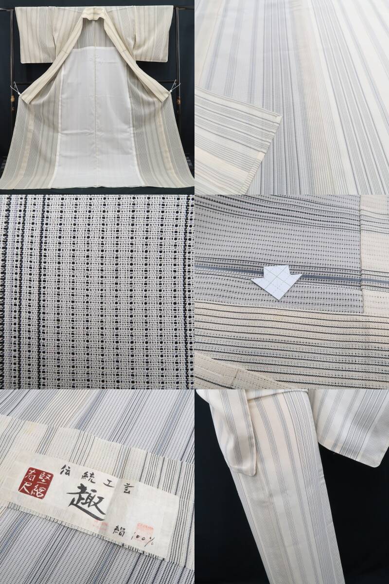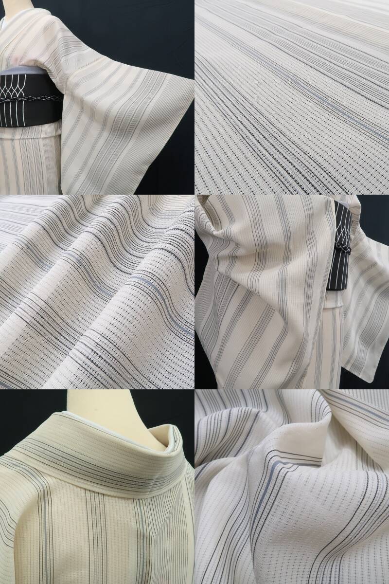 新品 縦絽 縦縞 お仕立て上がり品 夏着物 正絹 仕付け糸付”縦縞が引き立てる、夏の洗練”トールサイズ 小紋 6283
