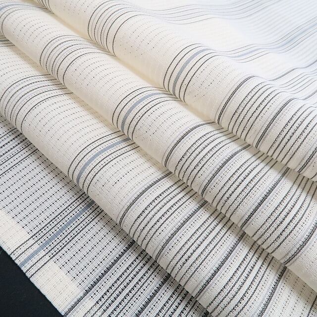 象牙色にグレーを添えた柔らかな色彩に、すっと走る縦縞が印象的な一枚。