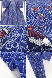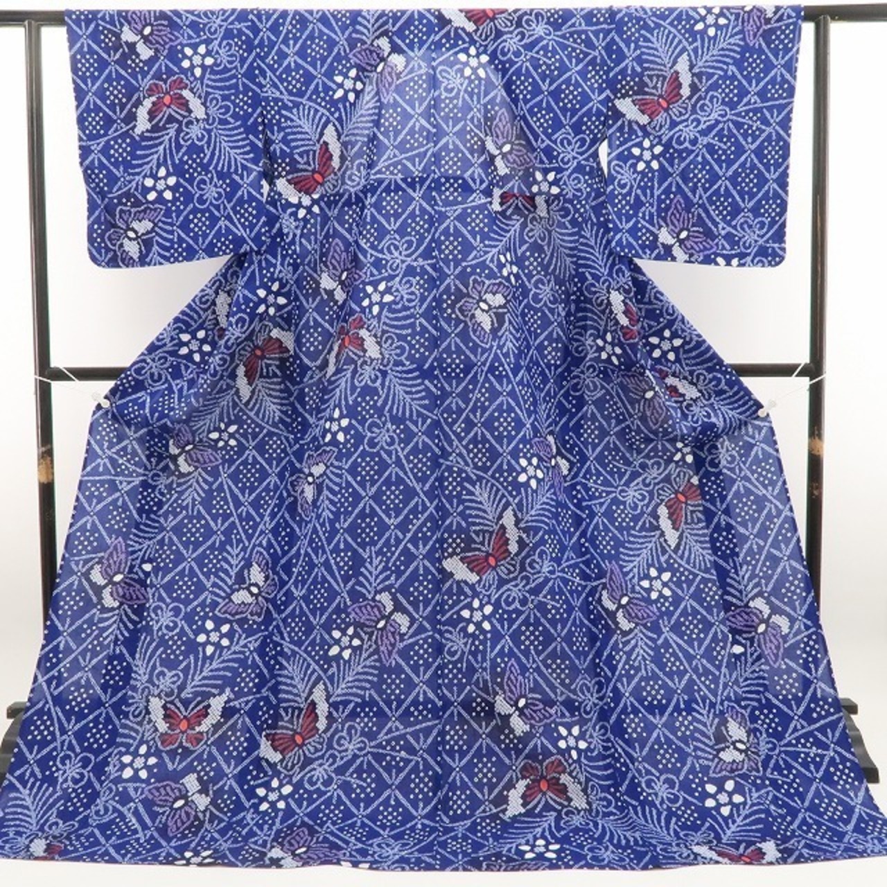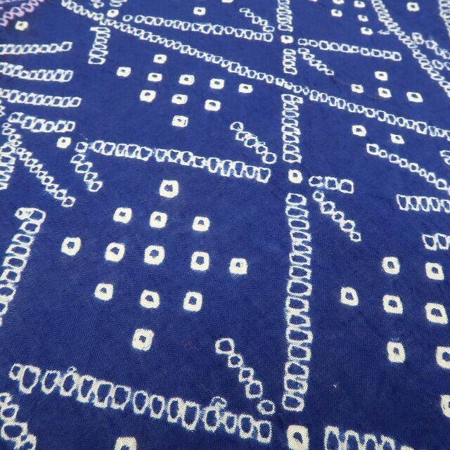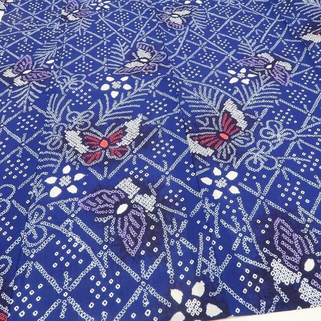 絞りならではの立体感がプリントにはない表情を生み出し、見る角度や光によっても美しさが移ろうのも魅力。 静かな鉄紺の地に、ふわりと舞う蝶がアクセントとなり、上品な中にやわらかな華やぎを添えてくれます。