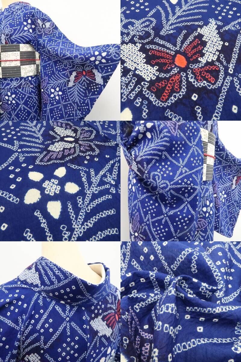 未着用 有松鳴海絞り 蝶 夏着物 綿 仕付け糸付”鉄紺にひらりと舞う蝶々の優美”高級浴衣 6298
