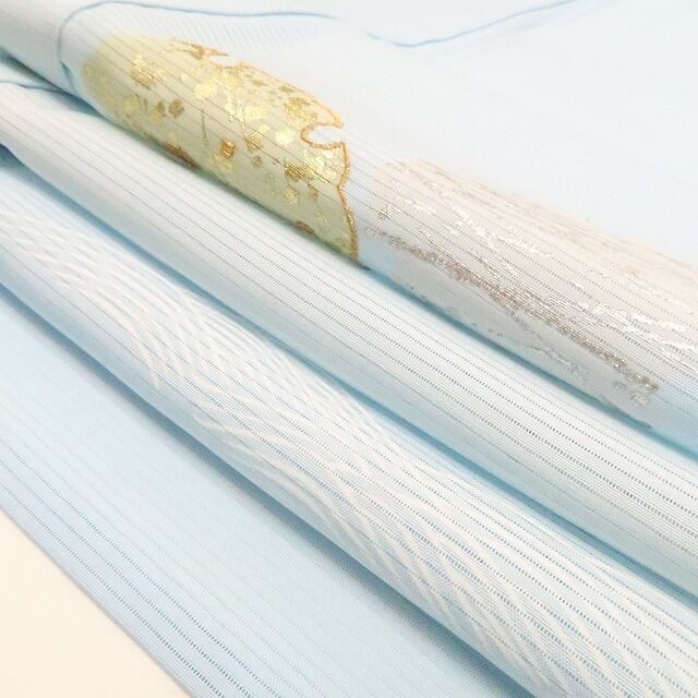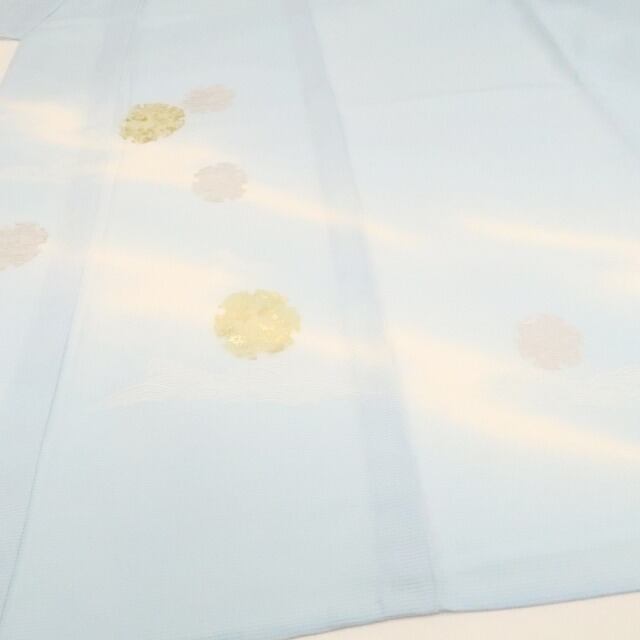 爽やかな勿忘草色の絽地に、ふわりと浮かぶ雪輪文様。