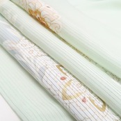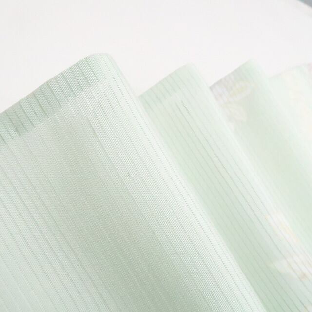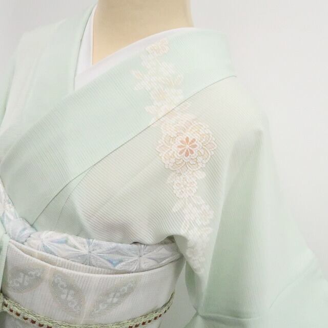 縦・横の糸の本数を減らして隙間を作り、風通しを良くした“絽”は、透ける部分が横縞になって表れる絽目が特徴で涼しげでさらりとした雰囲気、生地質を持ちます。7月、8月の盛夏に最適で、まだまだ気温の高い初秋頃まで活躍する薄物着物の代表格。