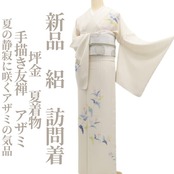 新品 絽 坪金 手描き友禅 アザミ 夏着物 仕付け糸付 正絹”夏の静寂に咲くアザミの気品”訪問着 6308