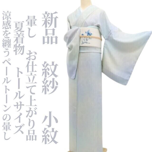 新品 紋紗 暈し お仕立て上がり品 夏着物 仕付け糸付”涼感を纏うペールトーンの暈し”トールサイズ 小紋 6312