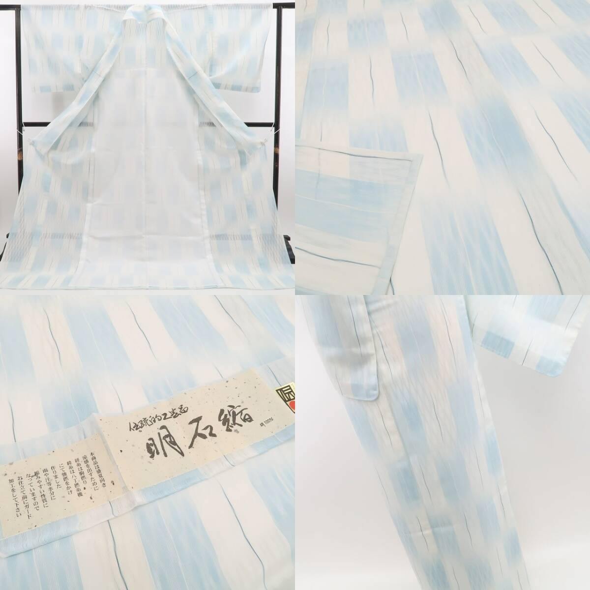 “風合い豊かな縮の清々しさ”、涼感豊かな夏着物…市松模様を込めた証紙付/トールサイズの明石縮、弊社お仕立て上がり品でございます。