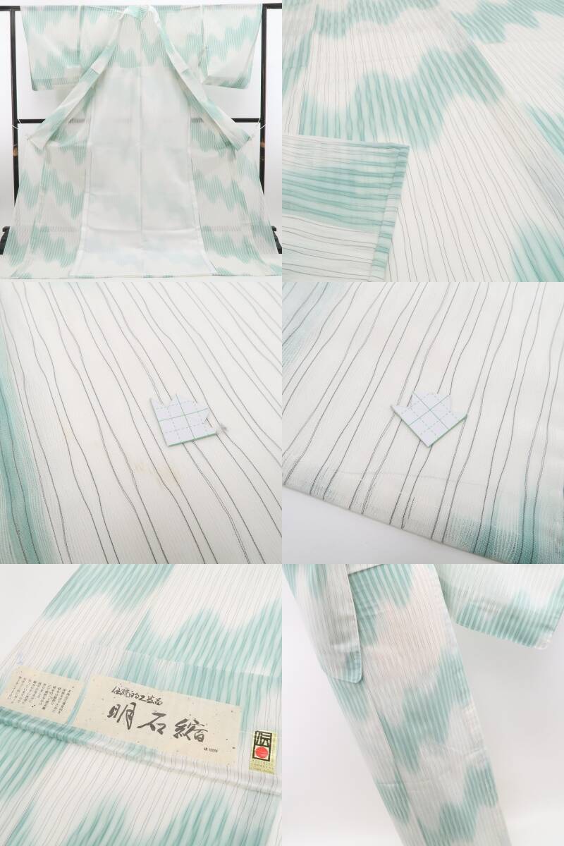 “風合い豊かな縮の清々しさ”、涼感豊かな夏着物…証紙付/トールサイズの明石縮、弊社お仕立て上がり品でございます。