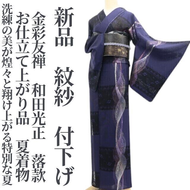 新品 紋紗 金彩友禅 和田光正 落款 お仕立て上がり品 夏着物 仕付け糸付“洗練の美が煌々と翔け上がる特別な夏”付下げ 6329