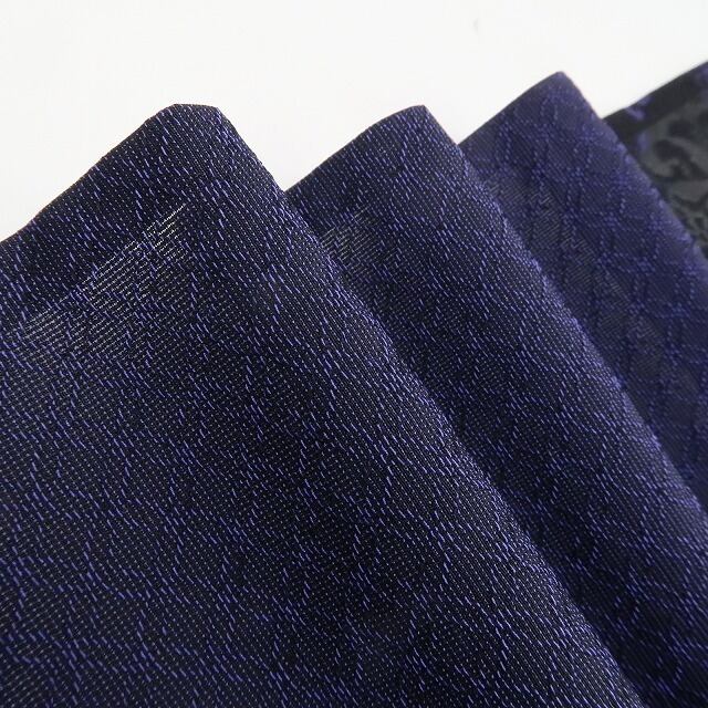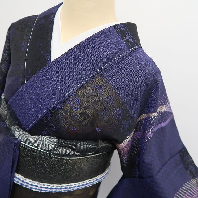 二本の経糸で緯糸一本ずつをからめて織り上げたシンプルなもじり織で、絽以上に透け感がある“紗”。こちらのように織り柄のある紋紗、紬糸を使った紗紬などがあり、7月、8月の盛夏はもちろん、白襦袢ではなく色襦袢を重ねて透け感をなくして悪戯な気温の変化を見せる6月、9月の単衣の季節にも着られます。