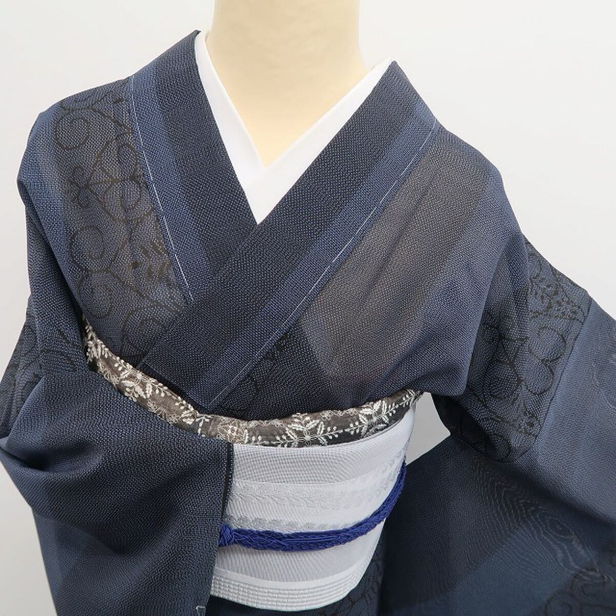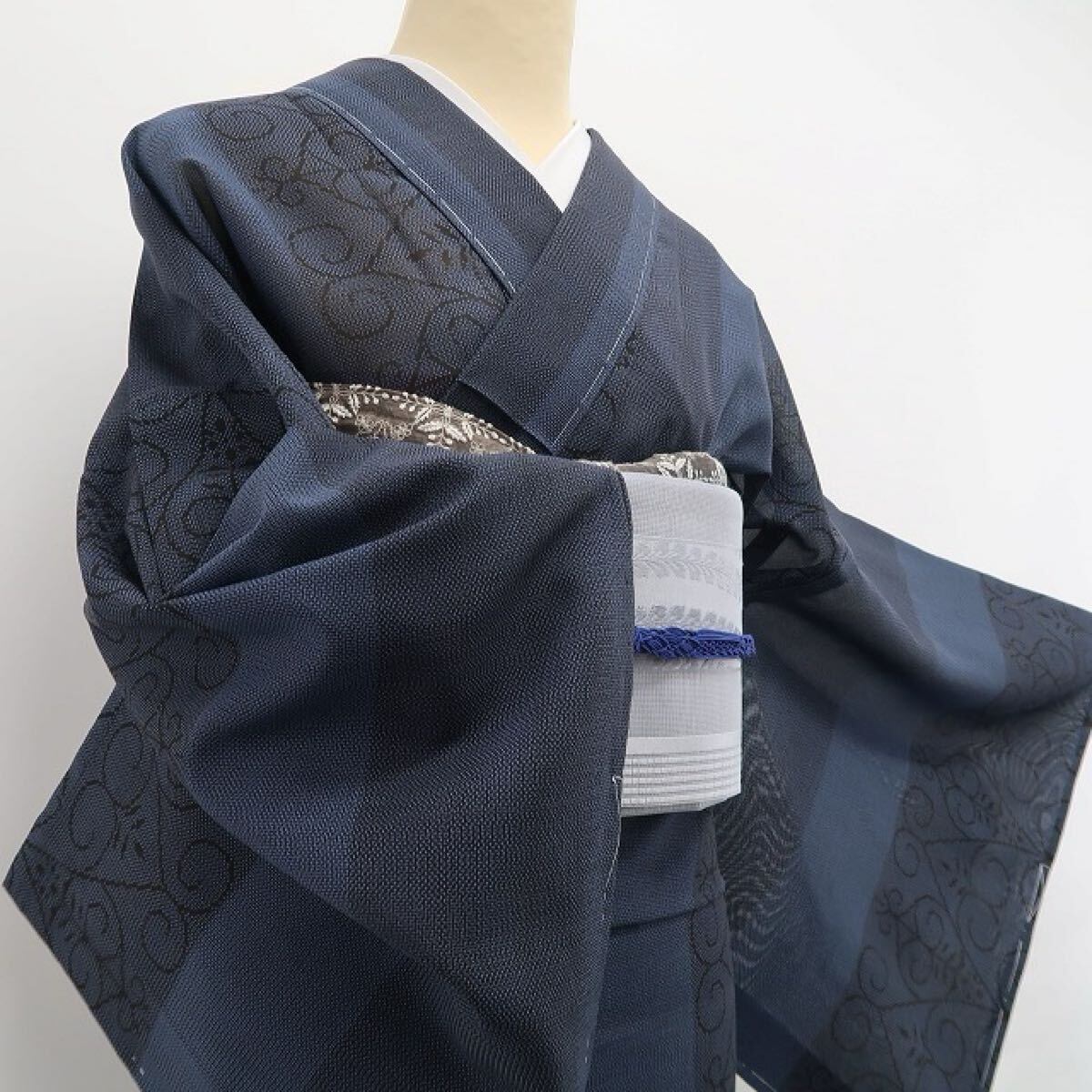 紺鼠色の紬地に、大胆な縦縞と曲線の美しい柄行。