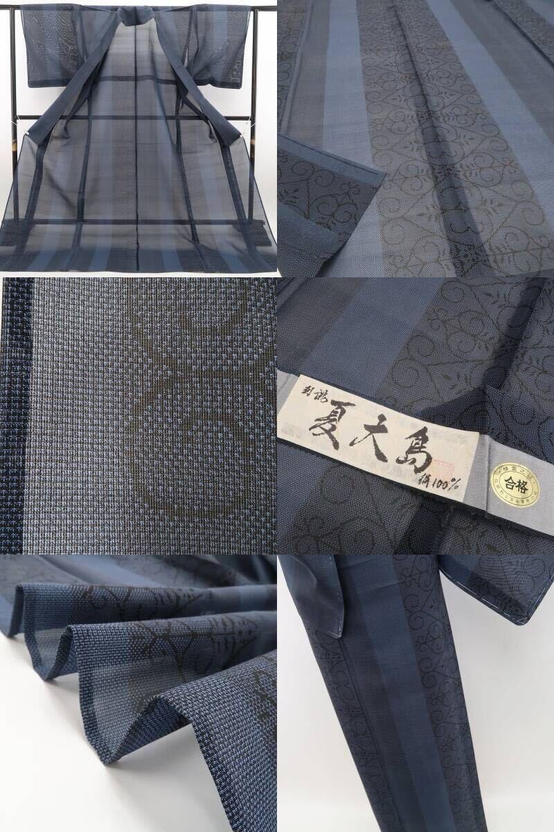 美品 紗紬 夏着物 正絹 仕付け糸付”大人の涼に粋と上質な装いを”本場大島紬 6332