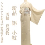 新品 絽 雪輪 夏着物 正絹 仕付け糸付“シルエットを預けて洒落味を披露”小紋 6338