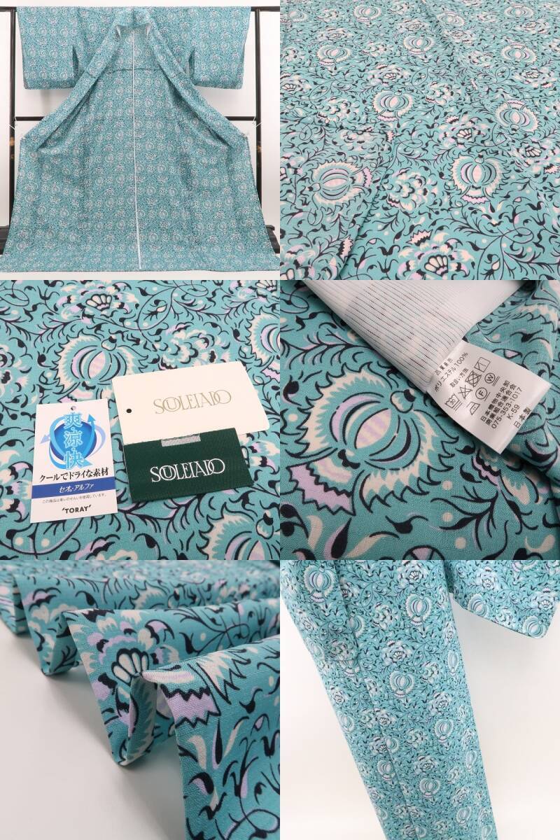 こちらは、フランスの老舗プロヴァンス・プリント生地ブランドSOULEIADO(ソレイアード)の人気デザインを東レのハイテク生地・セオアルファに配した浴衣です。