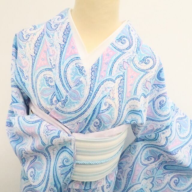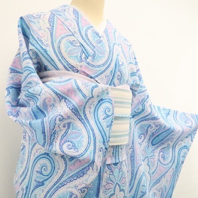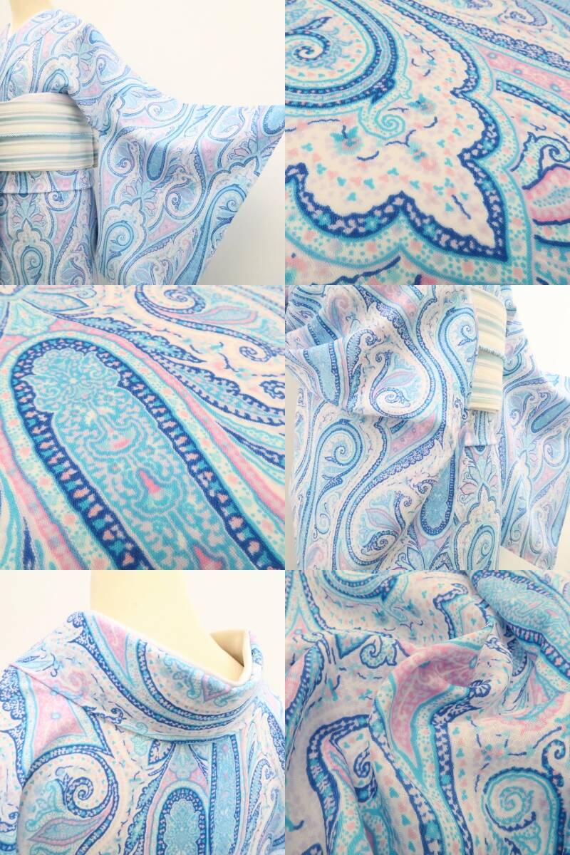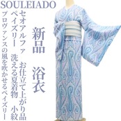 新品 SOULEIADO セオアルファ ペイズリー お仕立て上がり品 洗える夏着物 仕付け糸付 小紋“風を吹かせるペイズリー”浴衣 6347