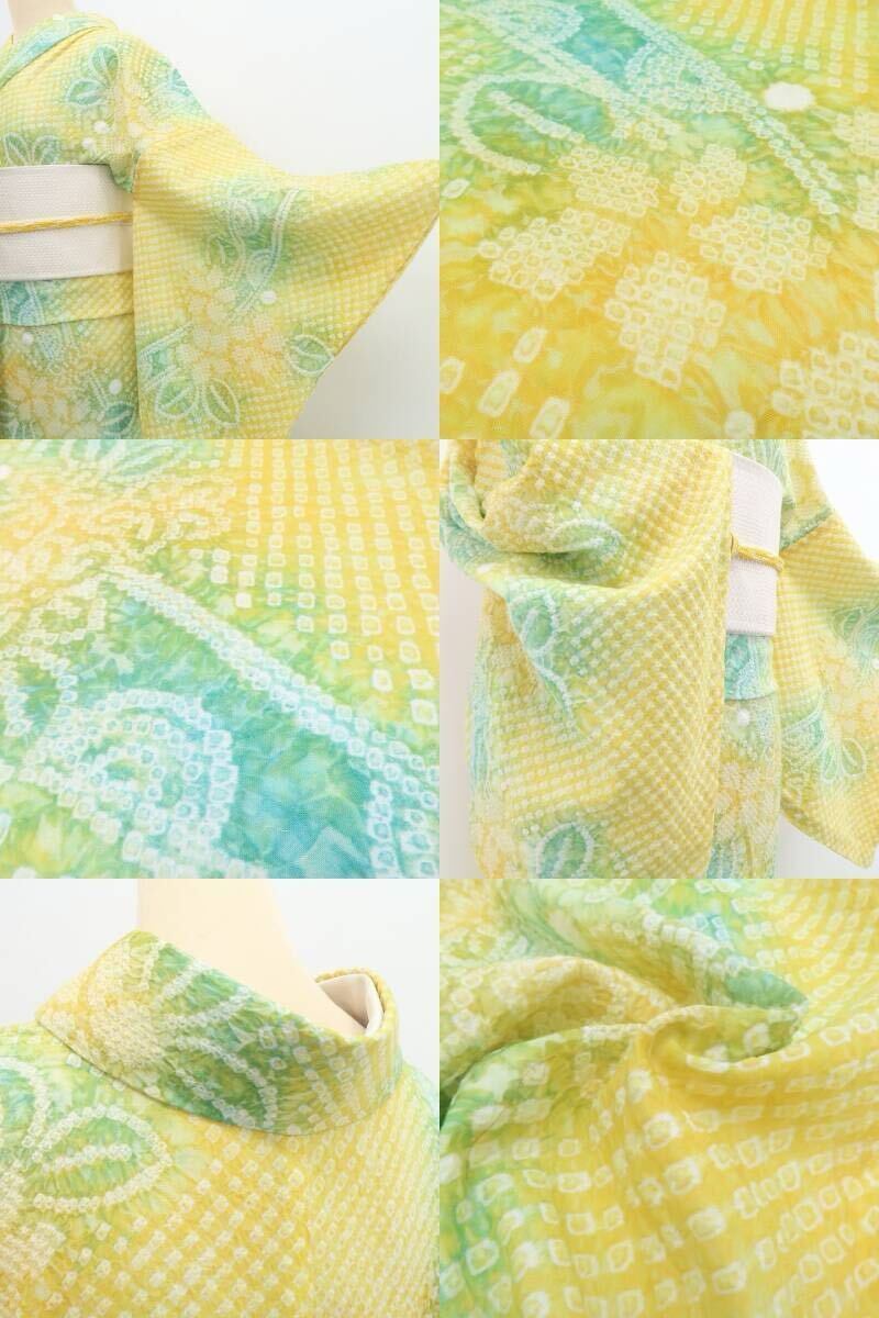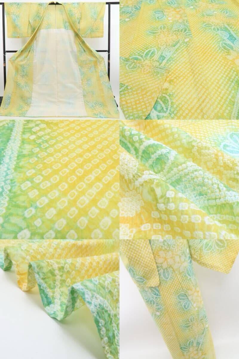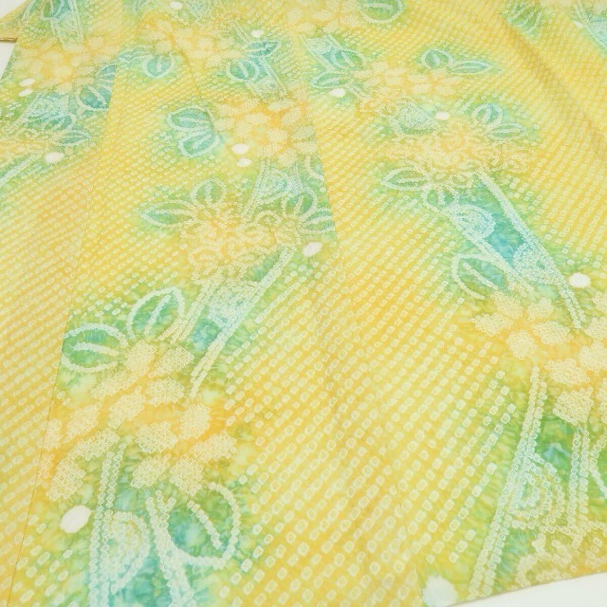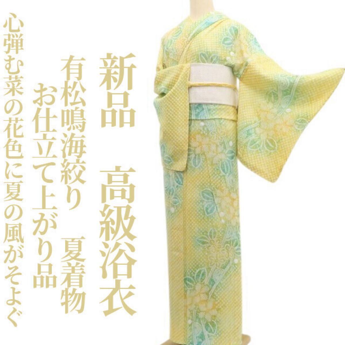 新品 有松鳴海絞り お仕立て上がり品 夏着物 綿 仕付け糸付 高級浴衣 ”心弾む菜の花色に、夏の風がそよぐ” 6359