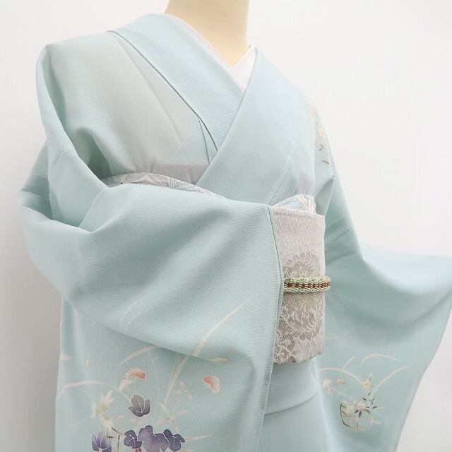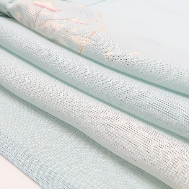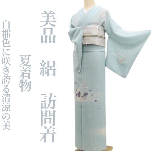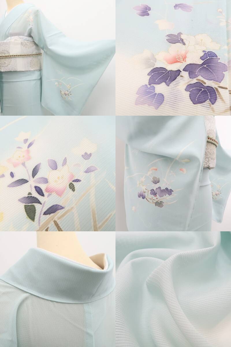 美品 絽 夏着物 正絹 仕付け糸付”白群色に咲き誇る清涼の美”訪問着 6361