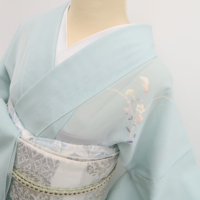 目にも涼やかな色彩と、絽の軽やかな透け感が調和する、夏の訪問着でございます。