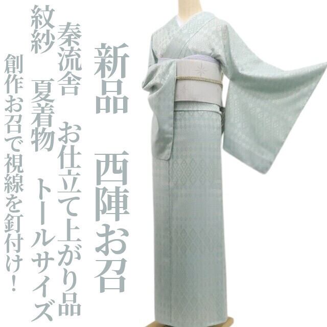 新品 紋紗 秦流舎 お仕立て上がり品 夏着物“創作お召で視線を釘付け!”仕付け糸付 トールサイズ 西陣お召 6371