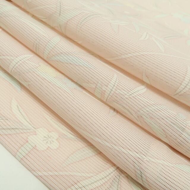 昨今、夏に和装をされる方が少なくなり希少なものとなりつつある絽のお着物は、二本の経糸を捩りながら緯糸を織り込んだもじり織で、盛夏のお召し物として涼しげでさらりとした生地質が魅力、着る方にもまた見る方にも清らかな風を感じるような涼しさを届けてくれます。