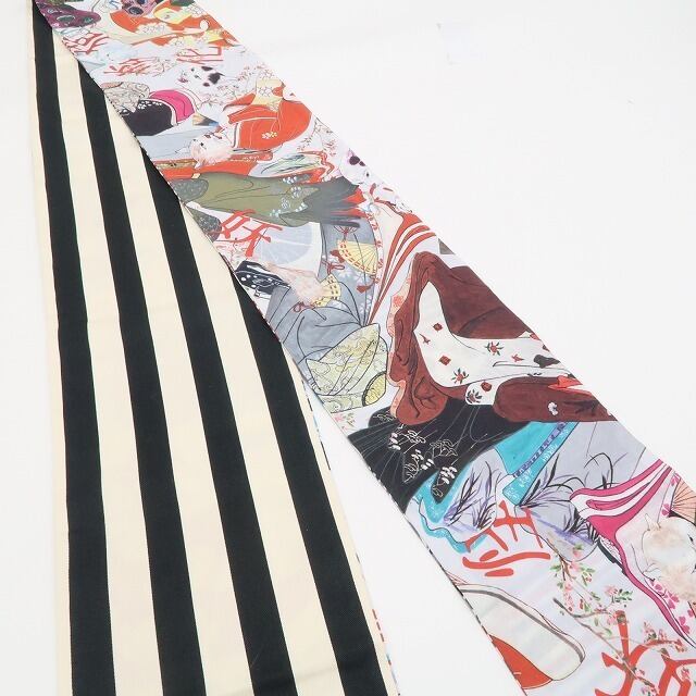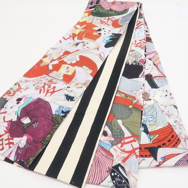 新品 3way 化け猫 ストライプ 綿 着物 浴衣”気分で楽しむ、3wayの遊び心”半幅帯 6381