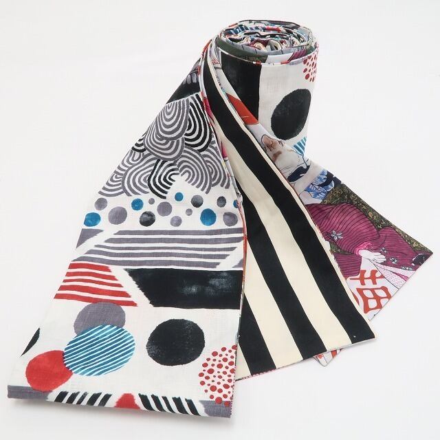 1本で3通りの表情を楽しめる、遊び心あふれるユニークな3way半幅帯でございます。
