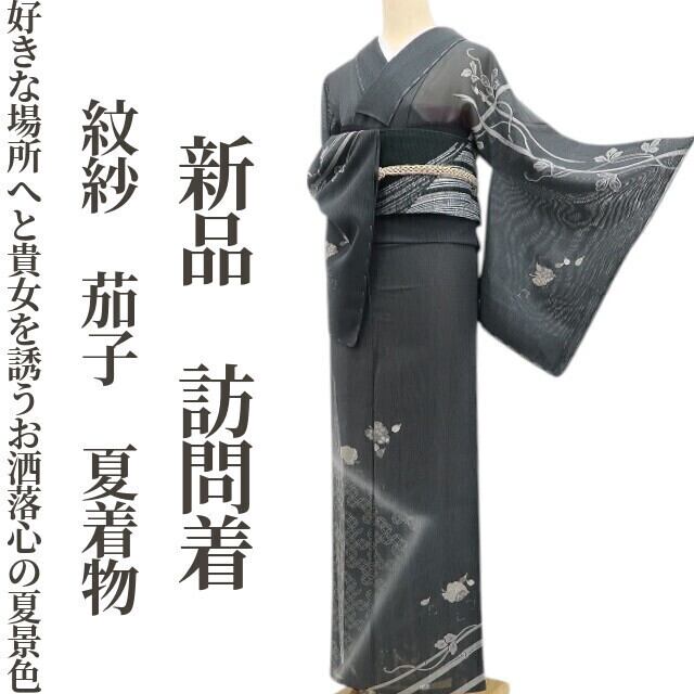 新品 紋紗 茄子 夏着物 正絹“好きな場所へと貴女を誘うお洒落心の夏景色”仕付け糸付 訪問着 6382