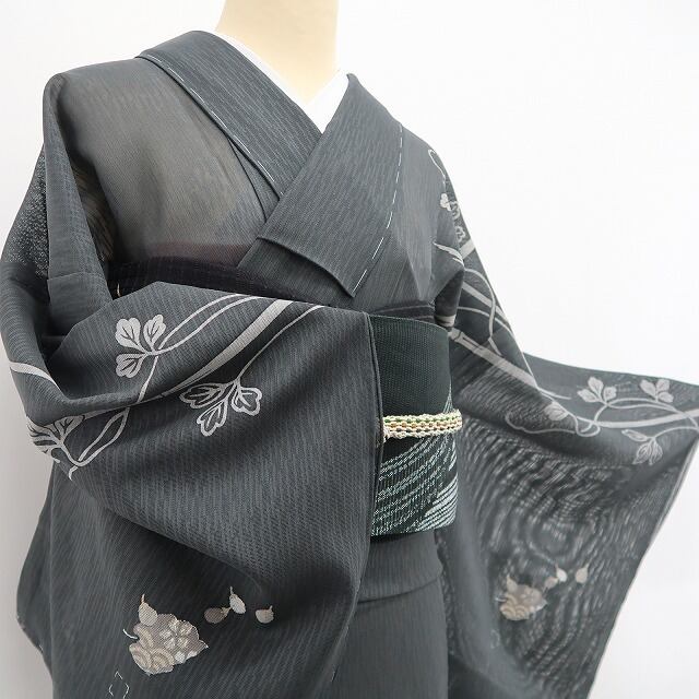 こちらのお着物は、グレイッシュトーンの彩色で夏着物の美しさにフォーカスしたデザイン性の高い柄行きを込めております。いずれも控えめな主張で…嫌みのない大人のセンスを魅せるのに最適なお召し物です。モダン創作着物は、お洒落を楽しむお召し物として、また和装の幅を広げる意味からも一枚お手元に置かれると重宝します。