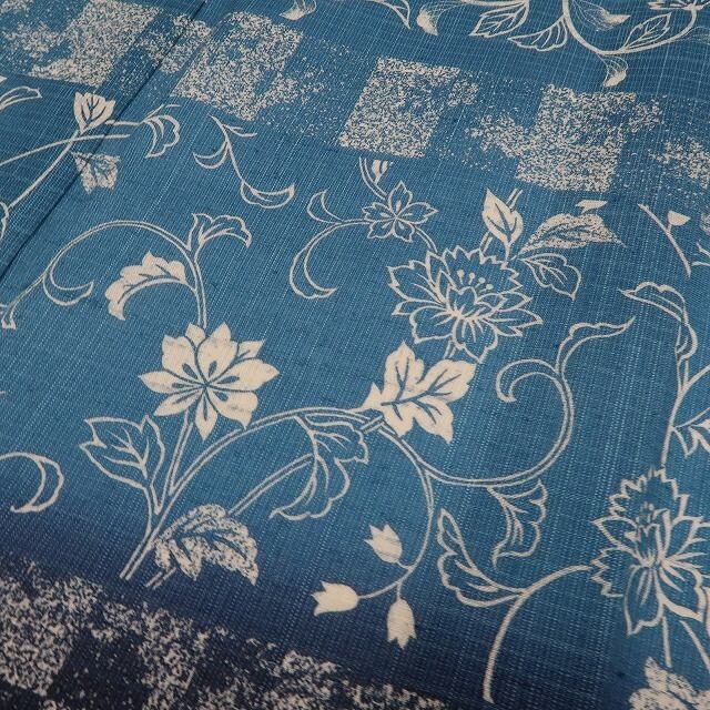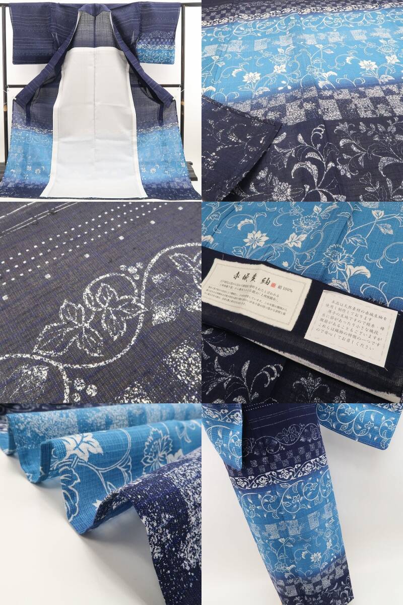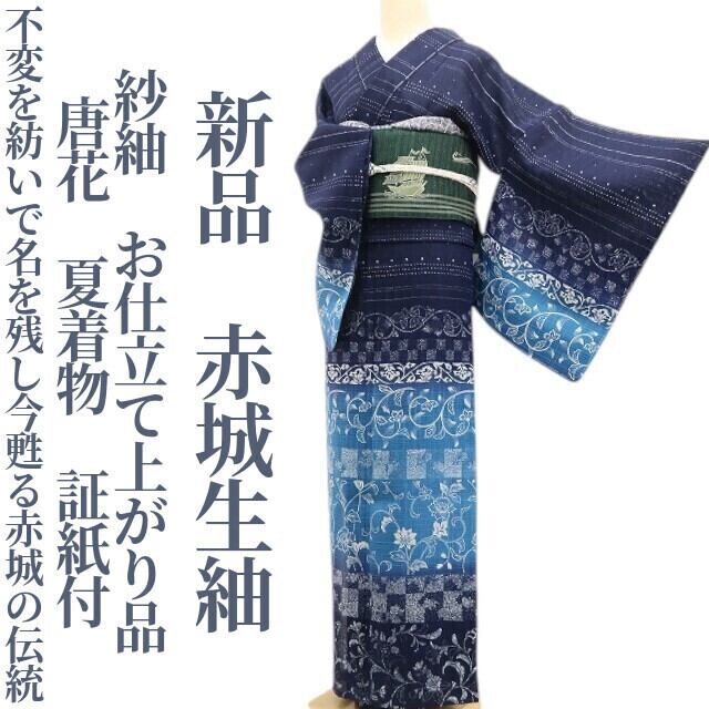 新品 紗紬 唐花 お仕立て上がり品 夏着物 正絹“不変を紡いで名を残し今甦る赤城の伝統”証紙付 仕付け糸付 赤城生紬 6384