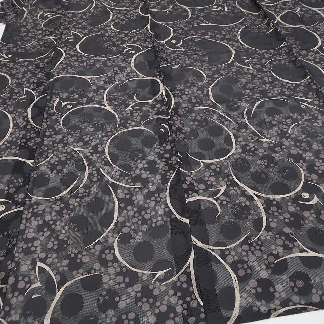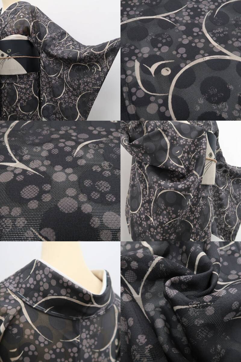 “着物に息づく創作のこころ”、紋紗の涼感豊かな夏着物…人気柄“猫”を題材にしたモダン創作の小紋、トールサイズのお品でございます。