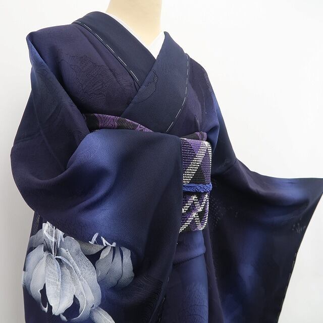 深く落ち着いた鉄紺色に、縦にゆらめくぼかしが水面を思わせる一枚。
