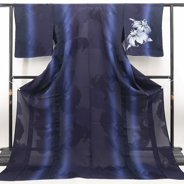 新品 紋紗 gossamer 百合 縦暈し 夏着物 正絹 仕付け糸付”静けさに涼と華やぎを添える百合”付下げ 6397