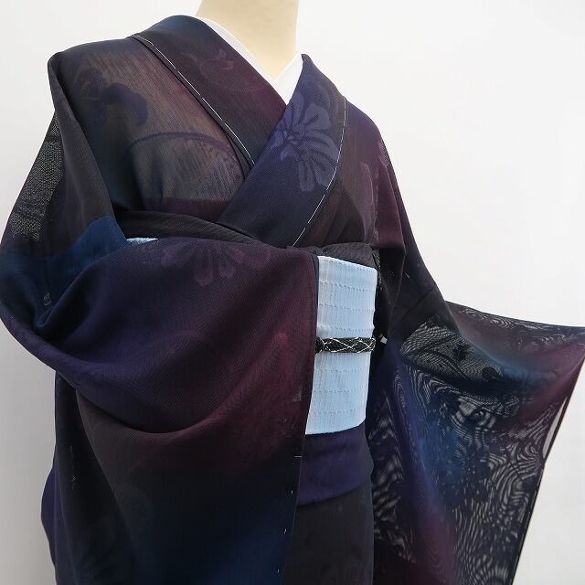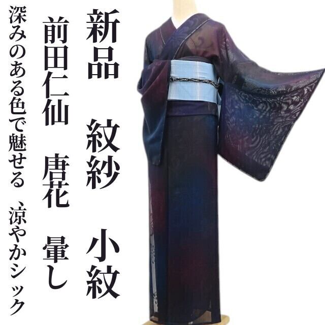 新品 紋紗 前田仁仙 唐花 暈し お仕立て上がり品 ”深みのある色で魅せる、涼やかシック”仕付け糸付 トールサイズ 小紋 6399