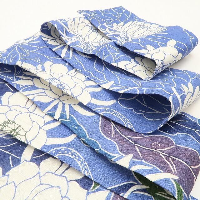 こちらの帯は、麻の素材感と夏帯の爽涼感を活かす月下美人の花柄を新たな視点で和モダンにデザイン化しています。しっかりと視覚を捉えるデザイン性は紅型帯の魅力そのもの!誰もが羨望の眼差しで見つめる美しい出で立ち、それはお洒落を愛でる心憎い大人の選択…“お気に入り”として思わず締めたくなること間違いなし。