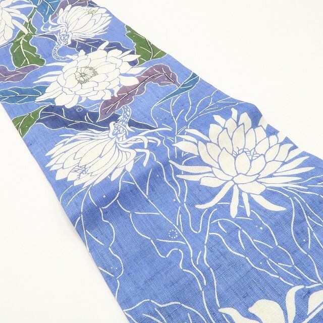 新品 本麻 栗山吉三郎 月下美人 お仕立て上がり品 夏着物“夢は巡りて未来を照らす”なごや帯6409