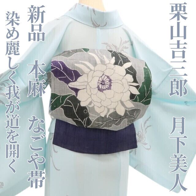 新品 本麻 栗山吉三郎 月下美人 お仕立て上がり品 夏着物“染め麗しく我が道を開く”なごや帯6410