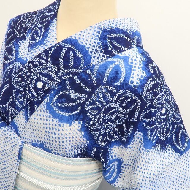 “今か今かと心躍らす浴衣自慢のお洒落びと”、涼感豊かな夏着物…日本の夏を彩る有松鳴海絞りの高級浴衣、バチ衿のお品でございます。