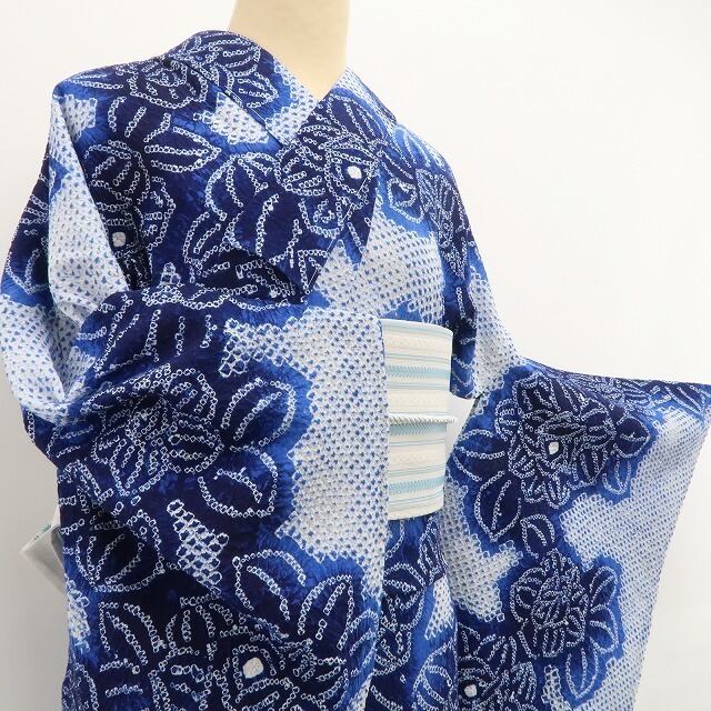 新品 有松鳴海絞り 薔薇 夏着物“薔薇の香りに我が身を染めて貴女が誘う夏夜の幻”綿 仕付け糸付 高級浴衣 6412