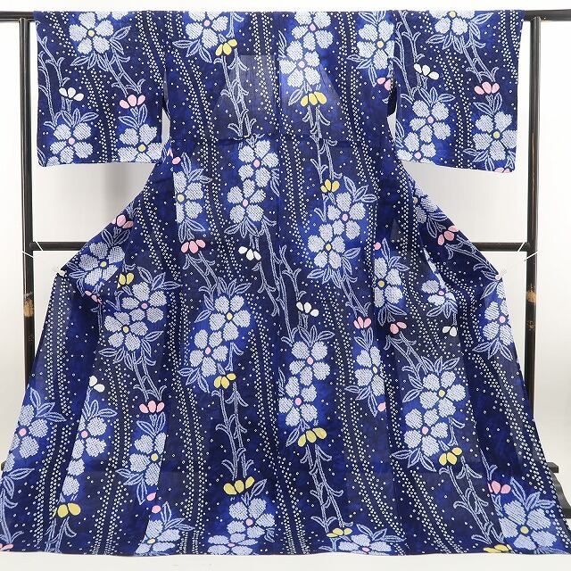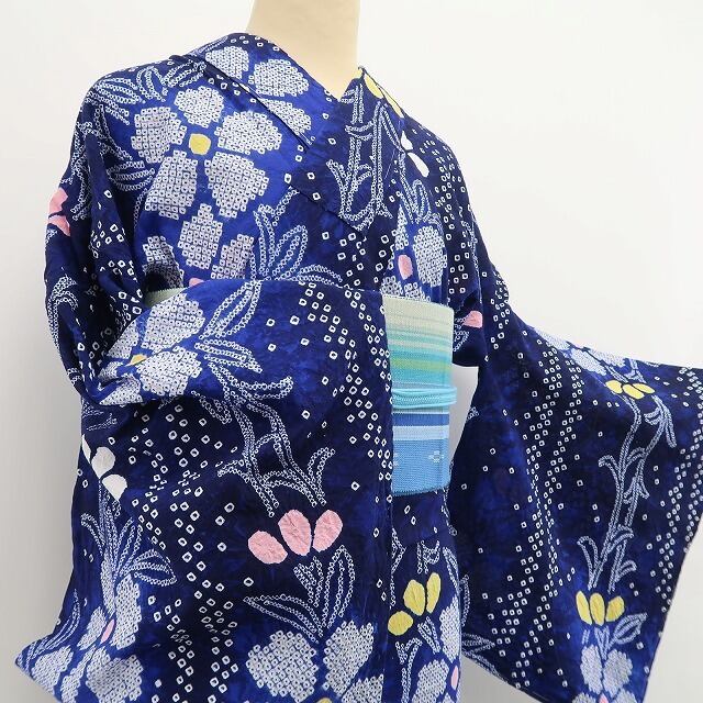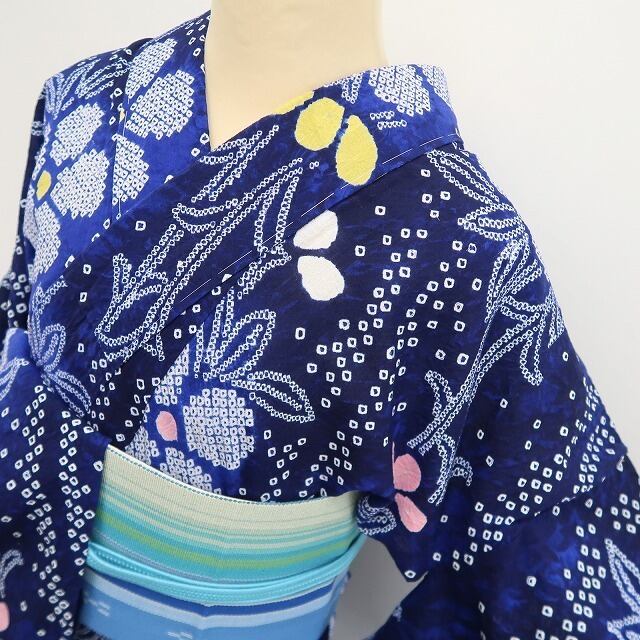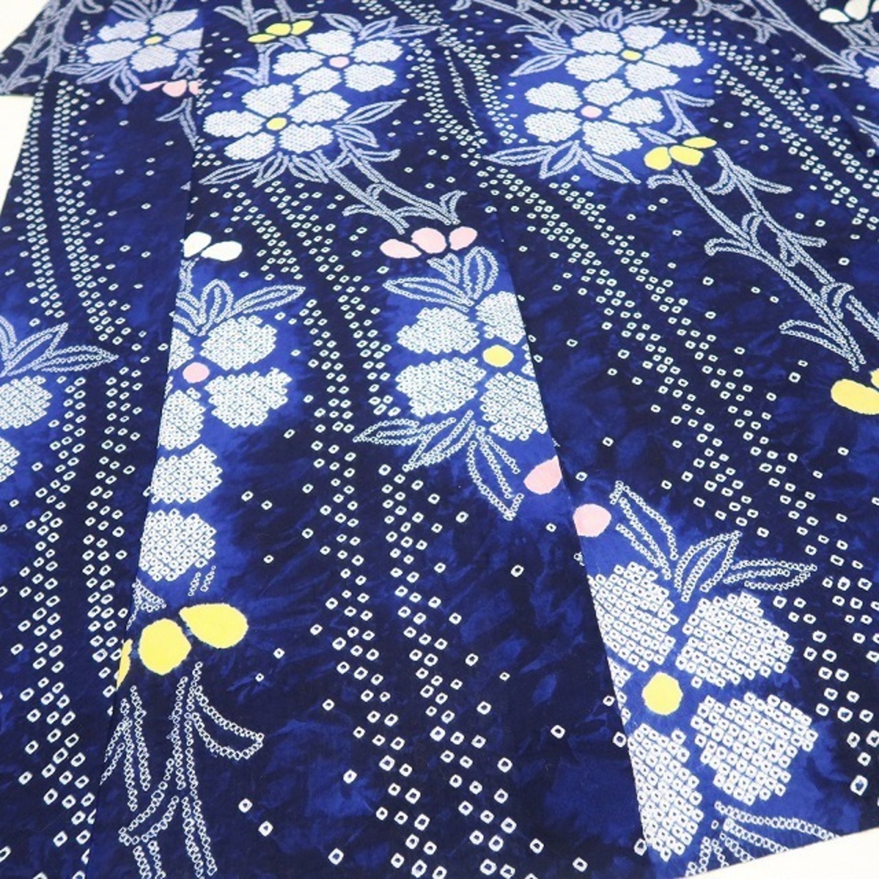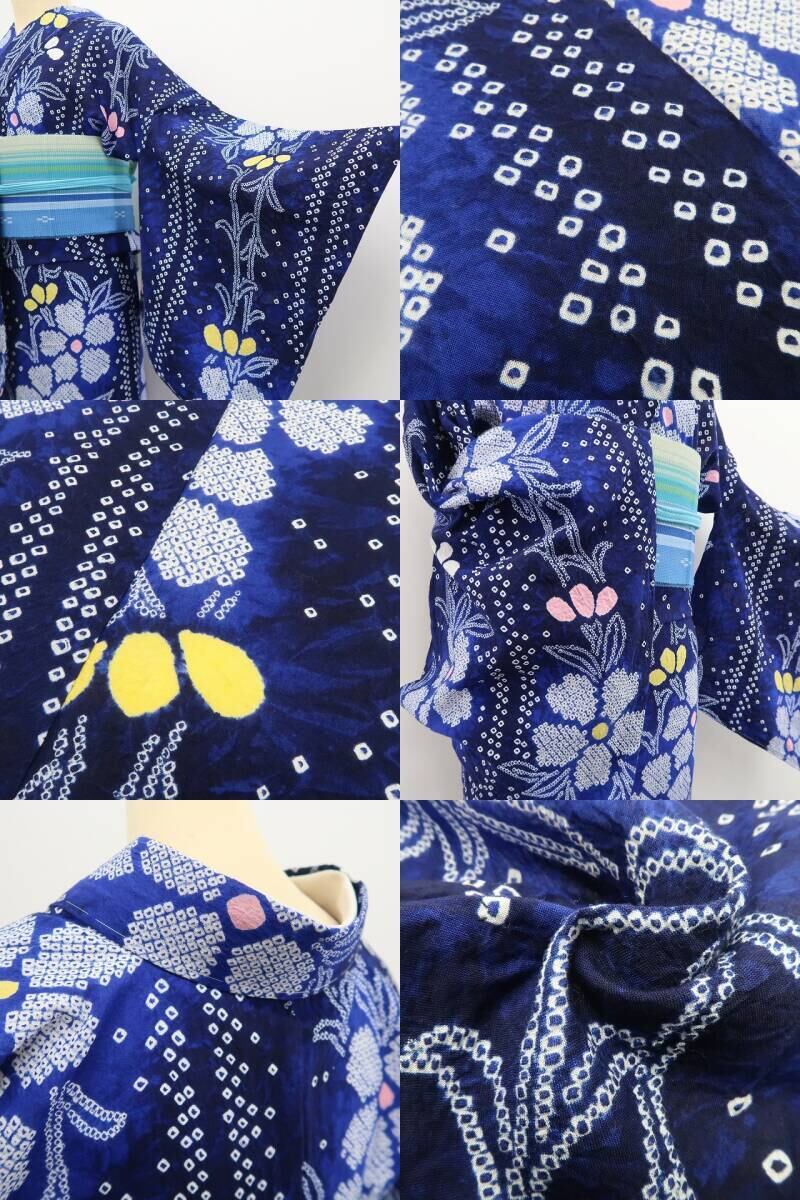 新品 有松鳴海絞り 夏着物“思い思いに記憶を辿ればお洒落浴衣の夏が来る”綿 仕付け糸付 高級浴衣 6413