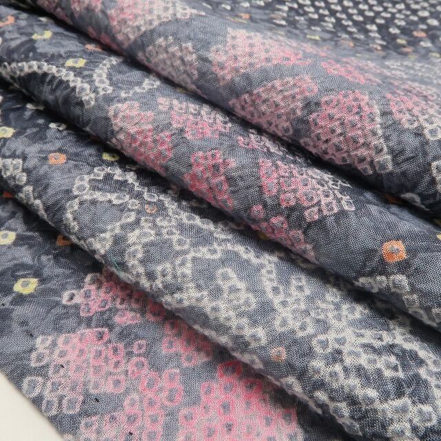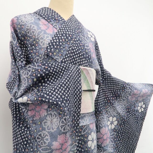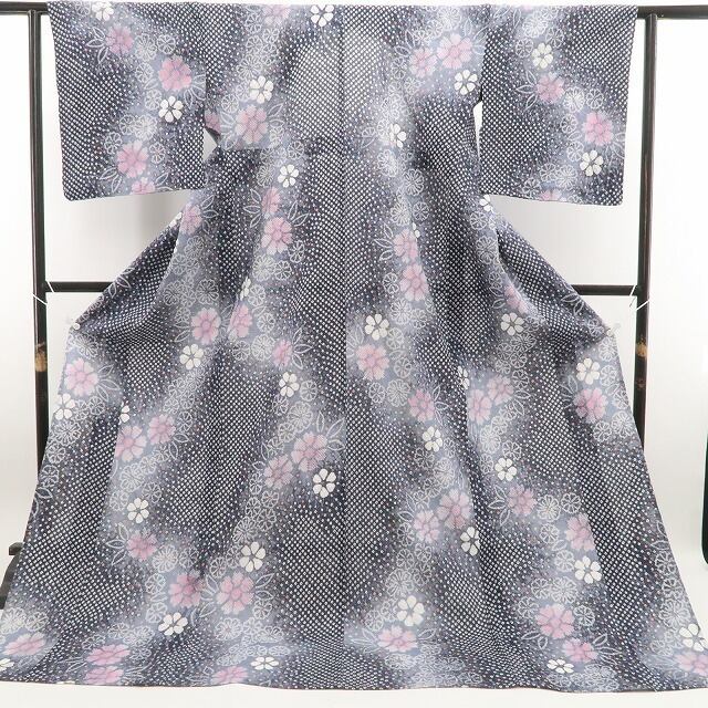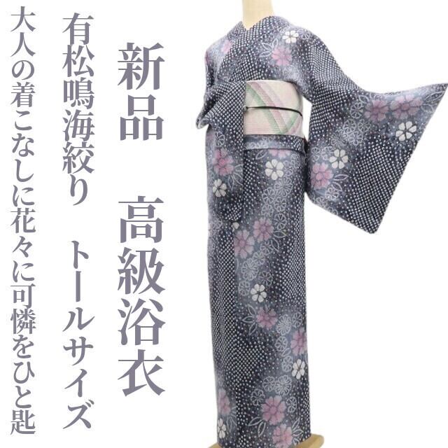 新品 有松鳴海絞り 夏着物 綿 仕付け糸付 トールサイズ”大人の着こなしに花々に可憐をひと匙”高級浴衣 6417