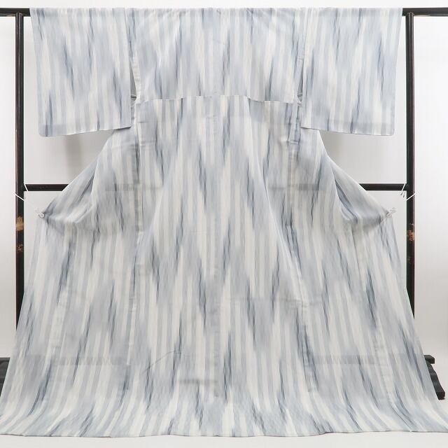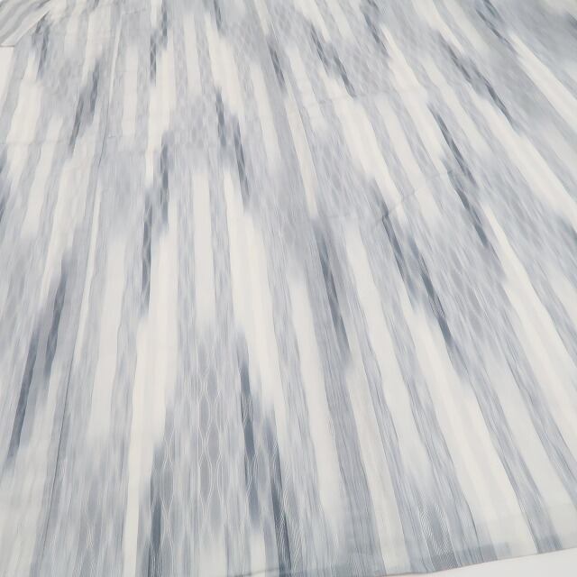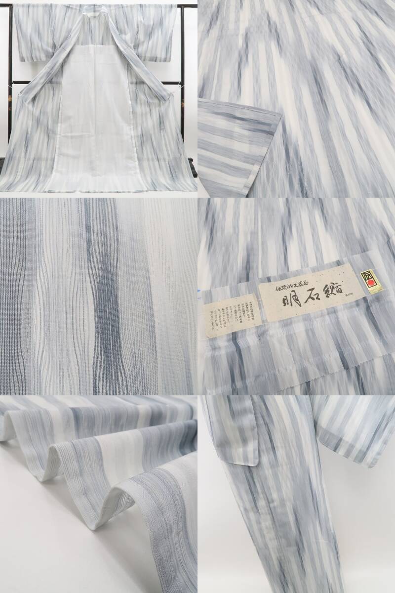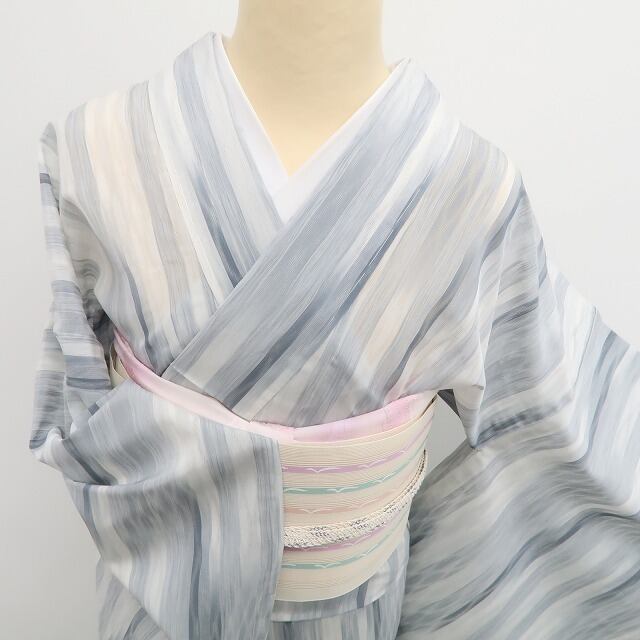 グレー地に流れるような柄が美しい、伝統工芸品・明石縮の夏着物。