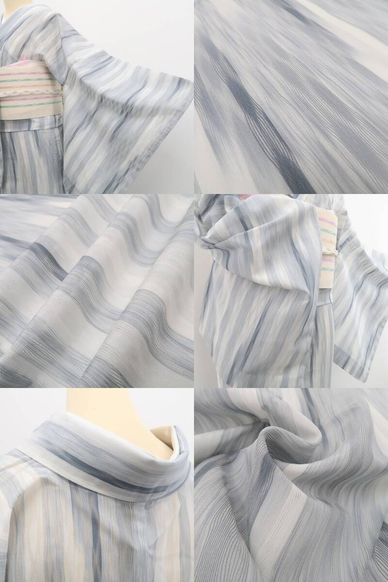 新品 お仕立て上がり品 夏着物 仕付け糸付 証紙付 トールサイズ”ひんやりと、しなやかに。伝統×洗練モダン”明石縮 6423